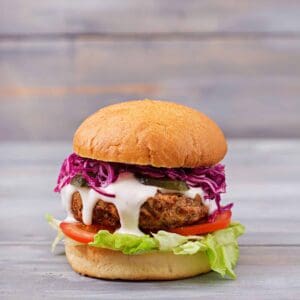 - Combine all ingredients in a medium bowl and form into four patties. Braai for five to six minutes, then flip and braai for another five to six minutes, or until burgers reach an internal temperature of 75°C.