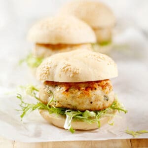 - Cut salmon into pieces and blend in a food processor for one minute. Combine in a medium bowl with remaining ingredients and form into four patties.