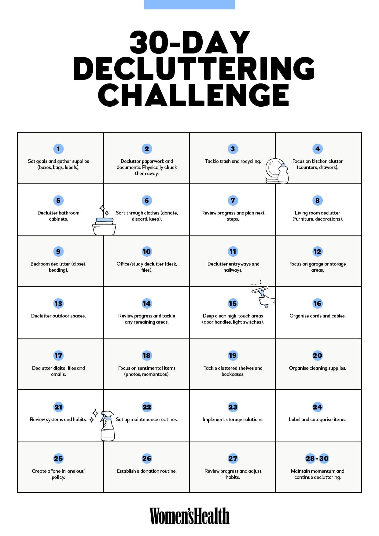 “To prepare for a 30-day decluttering challenge, start by setting clear goals on what you want to achieve.”