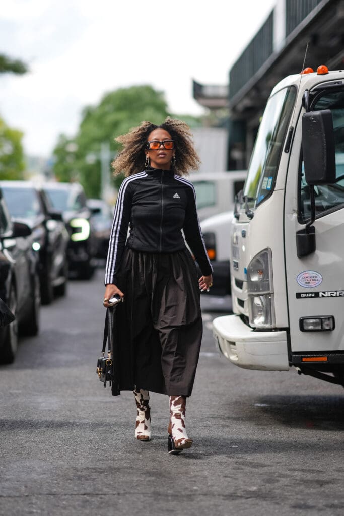 “Stick to minimalist silhouettes to avoid the print feeling too chaotic,” advises Whitney. “Opt for clean, structured pieces like a simple cow print midi skirt or tailored pants and keep everything else in your outfit clean and unfussy.”