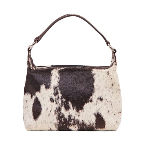 The “Nine to Nine” FW24 collection has stunning cow print accessories like the Saylo Leather Jacket and the Saylo Bag; both simple and effective ways to give a basic outfit some character or edge.
