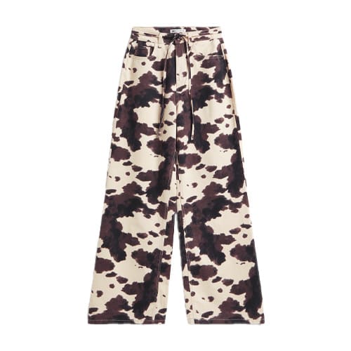 Stockholm-based fashion house Acne Studios has a number of cow print items that we love. Honourable mentions go to their gabardine cow print trench and cow print velvet trousers; pieces well-recognised for their chic silhouettes and detailed fabrics.