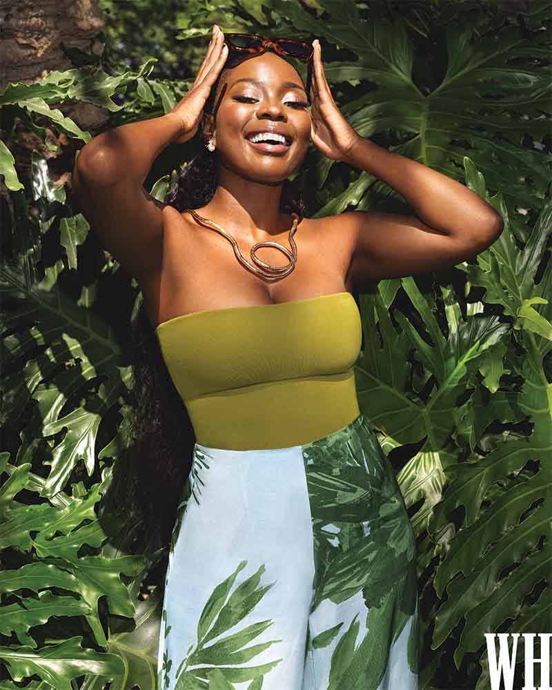 But, while it has no place on her runs, music comes in handy when Nambitha prepares to get into, and out of, character. And she has playlists for almost every production she works on, with Beyoncè’s Black Is King album and Nina Simone featuring in all of them. “When I put on my earphones on any set, that’s usually me morphing into something else,” she explains. “It’s how I get into character and how I place myself in the moment. Just before we started shooting this cover, for instance, I listened to some Nina Simone to remind myself what I was there to do. By the way, Nina Simone is my person and my dream role.”