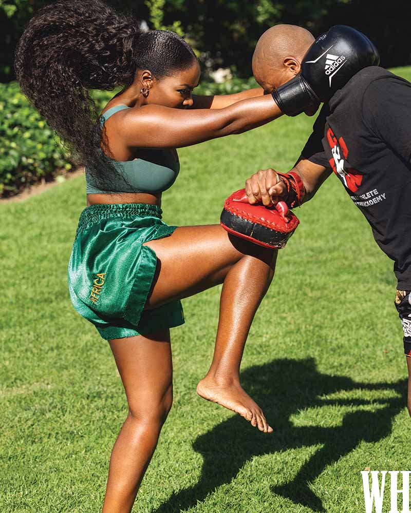 This dedication was tested in the fairytale-like Zürich, as Nambitha’s stay there meant shelving Muay Thai for two months. The absence was palpable: “That was so long for me to go without Muay Thai! Honestly, this Women’s Health shoot couldn’t have come at a worse time. Girl, I was in a foreign country eating pastries!” she declares.