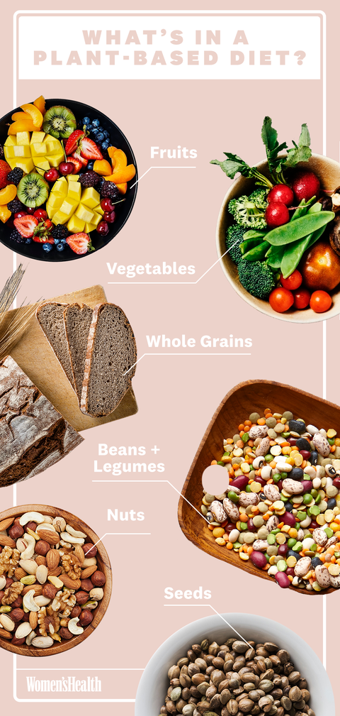 “A plant-based diet means eating primarily whole plant foods rich in vitamins, minerals, fibre, antioxidants, and healthy fats,” says Alexis Joseph, a registered dietician, who writes the popular Hummusapien blog. In other words, the majority of your diet comes from minimally processed fruits, veggies, whole grains, beans, legumes, nuts, and seeds.