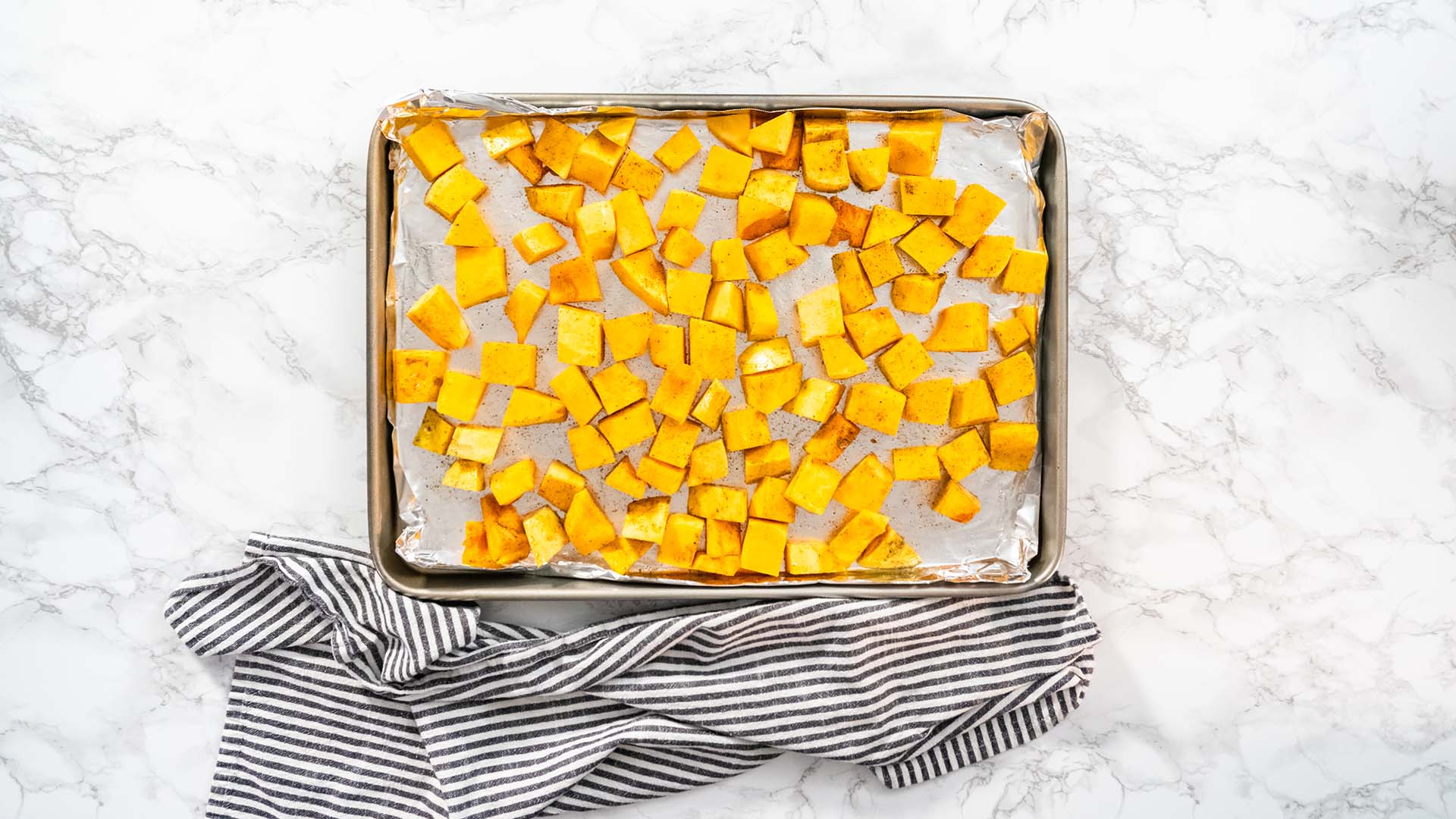 - Arrange in single layer on prepared baking sheet. Roast 25 to 30 minutes, stirring occasionally, until tender and lightly browned. Let cool 10 minutes.