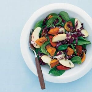 This filling salad is low in fat and high in fibre, making it a satisfying choice for lunch when you’re super hungry and need an energy boost. For an extra protein hit, add a grilled chicken breast or 30g crumbled feta, which pairs beautifully with the butternut and spinach.